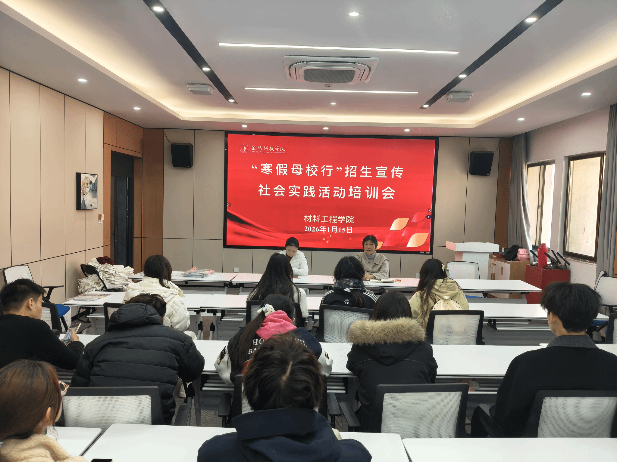 为落实学校招生宣传工作要求,充分展现材料学子的良好精神风貌,切实发挥社会实践的育人实效,2026年1月15日,材料工程学院于知行楼A506会议室举办了“寒假母校行”招生宣传社会实践活动培训会,院党委书记陈健、副书记韩铖及15名同学参加了此次培训会。