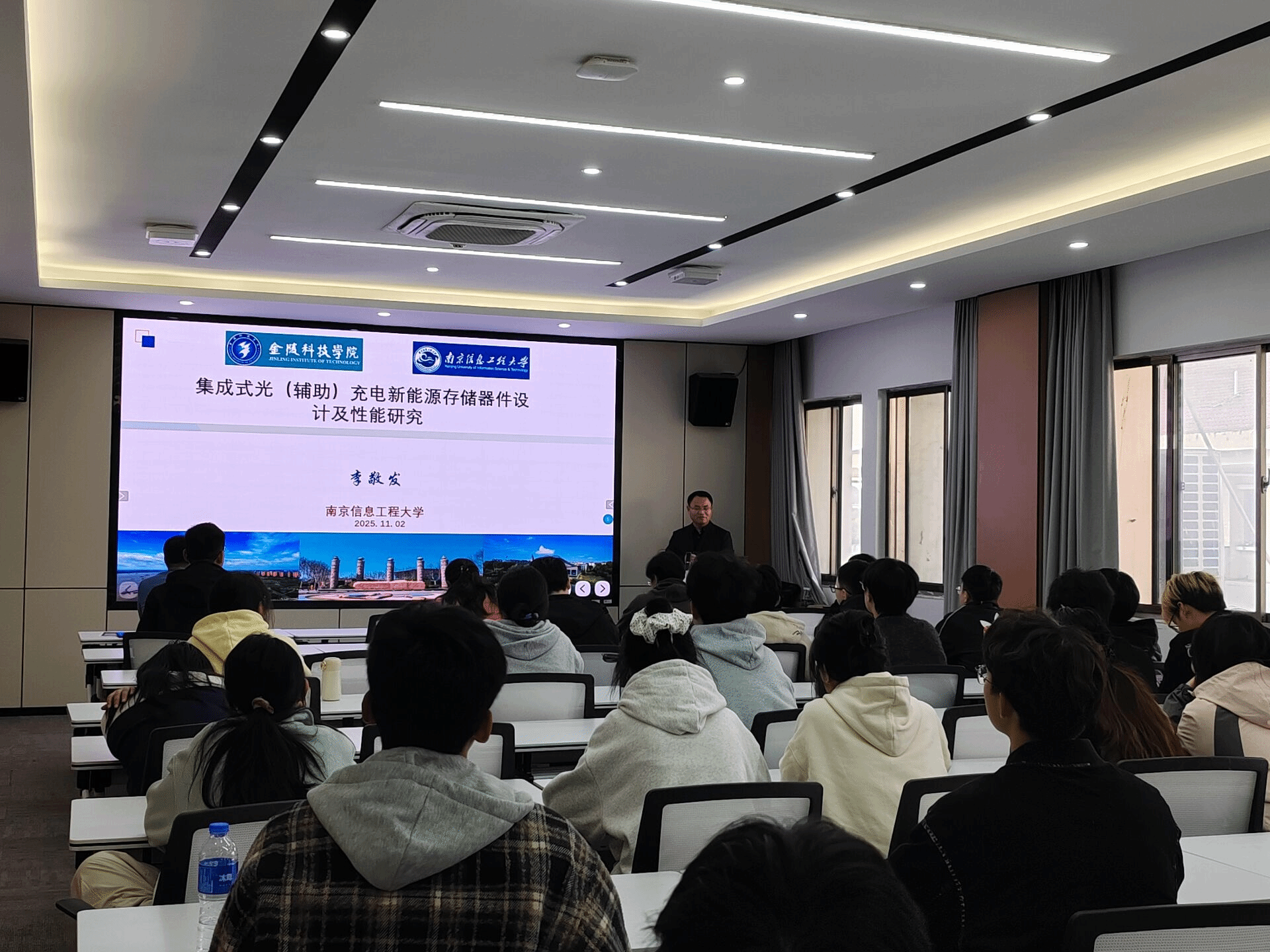 为深化校际合作、推动科研与教育协同发展,在我校与南京信息工程大学签署全面深化合作框架协议的大背景下,11月3日,南京信息工程大学化学与材料学院副院长李敬发教授应邀到访金陵科技学院材料工程学院,围绕新能源存储与师生协同发展两大主题开展学术交流。