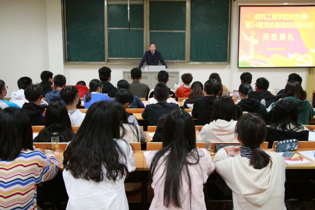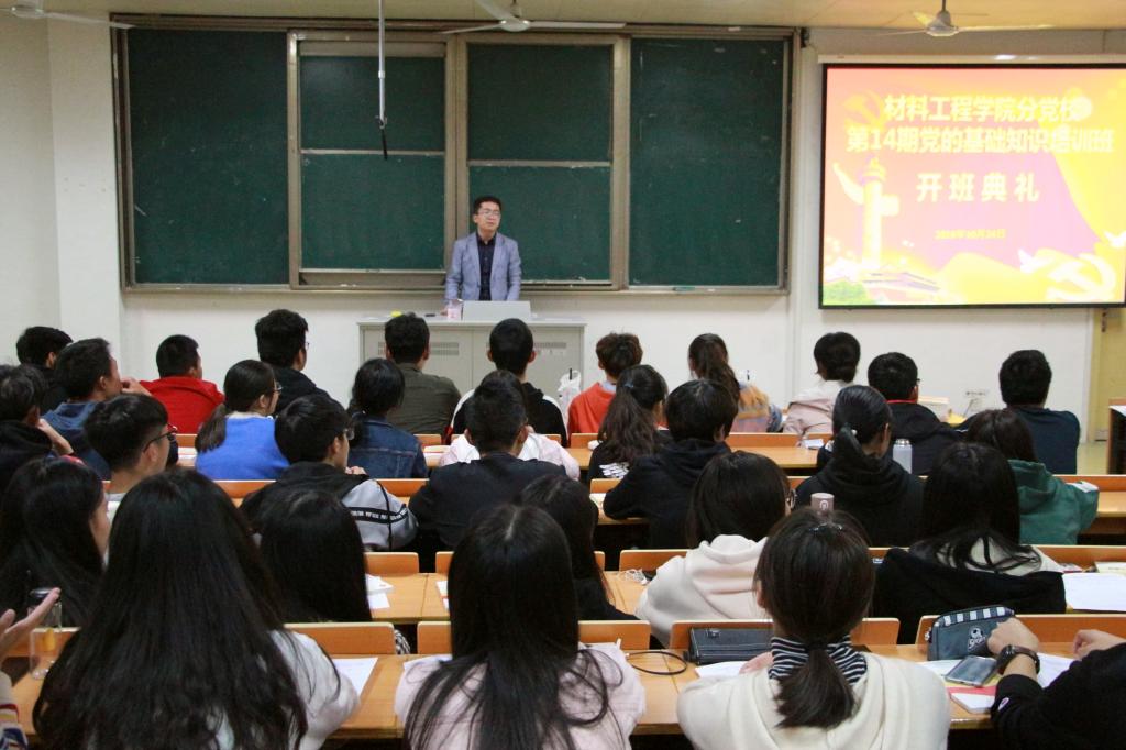 为了让同学们增加对党的了解,树立正确的世界观、人生观和价值观,材料工程学院分党校2018年10月24日晚上6点在1232教室举办了第14期党的基础知识培训班开班典礼。材料工程学院党总支书记陆秋林,辅导员邵云龙出席。