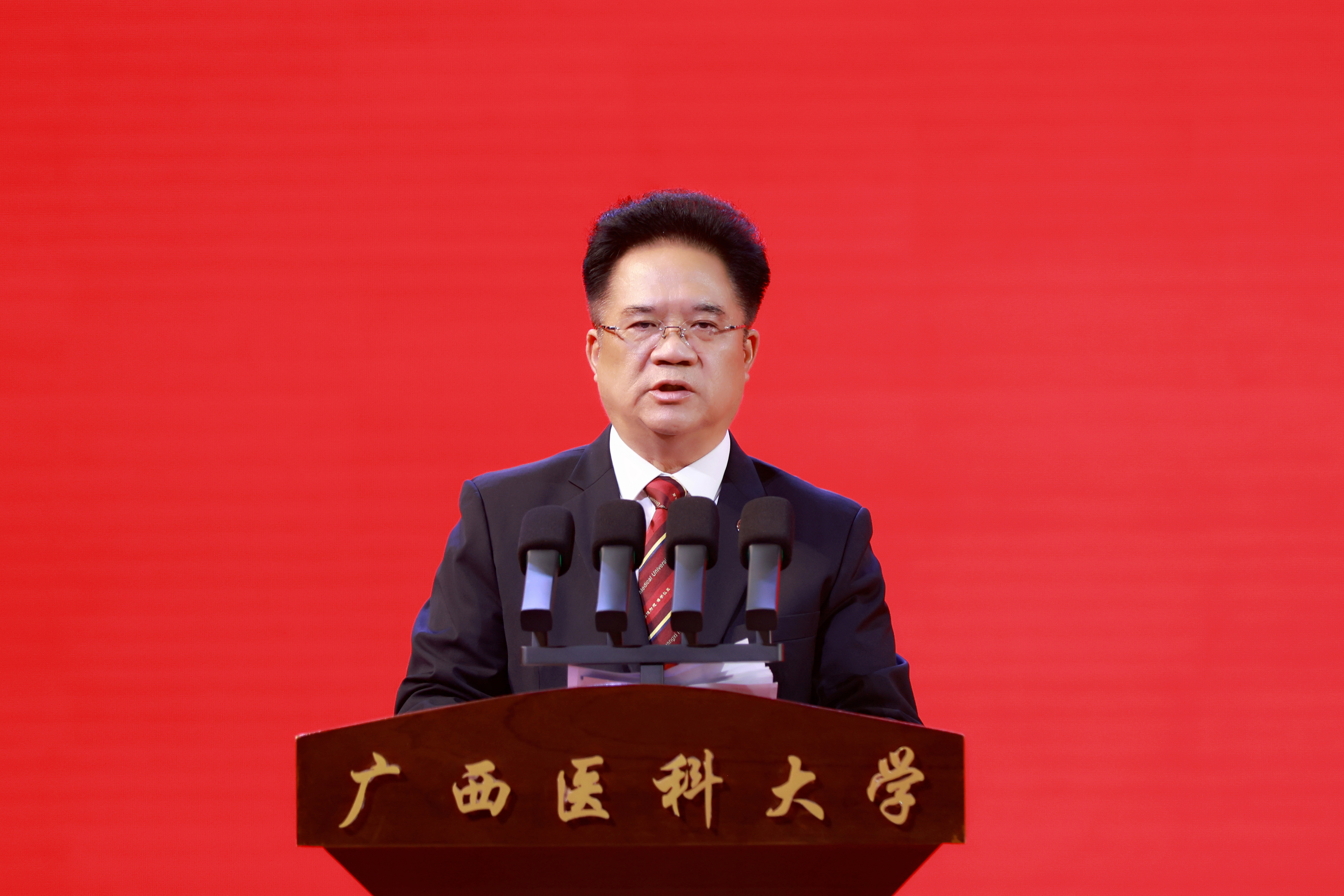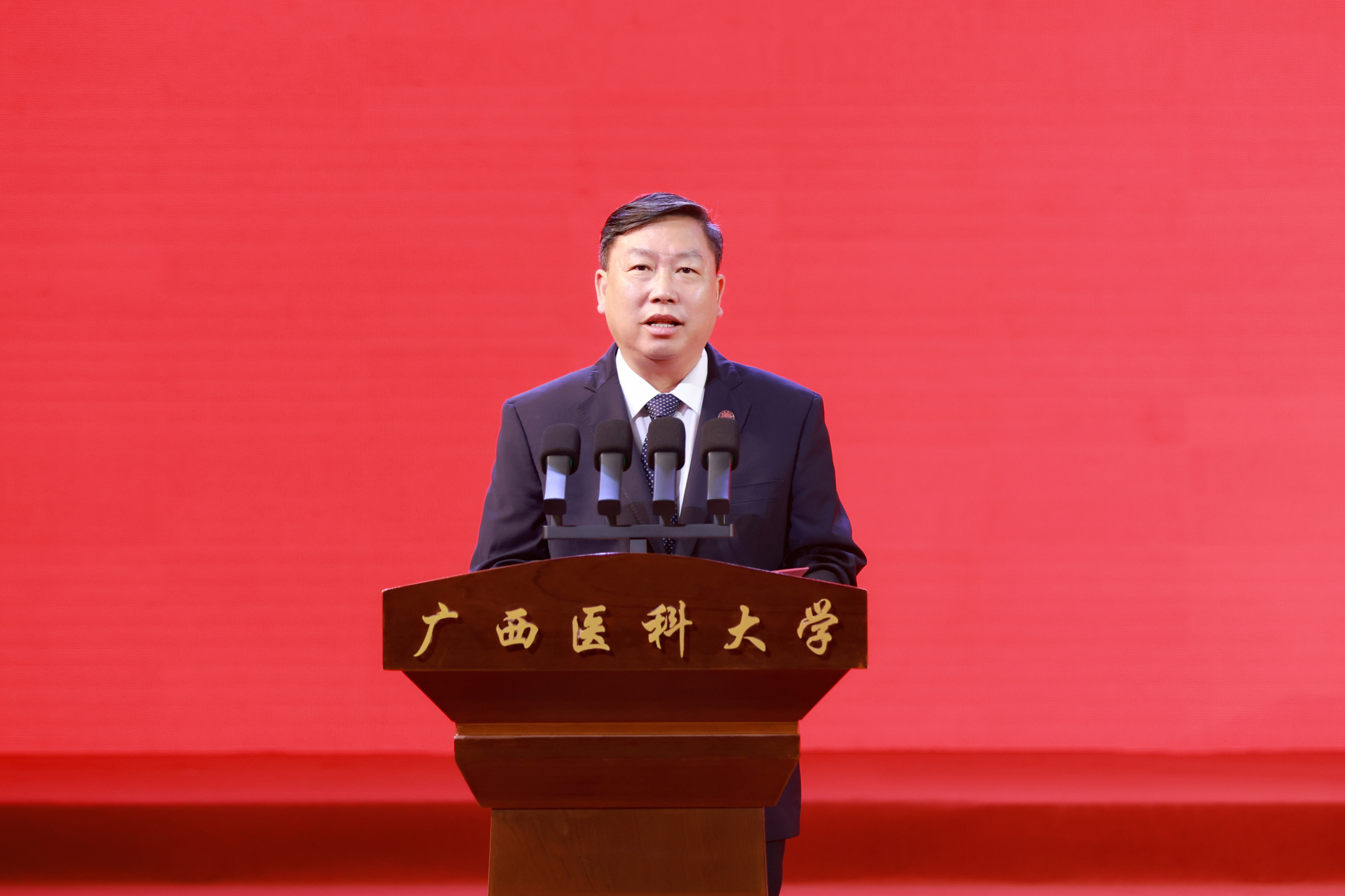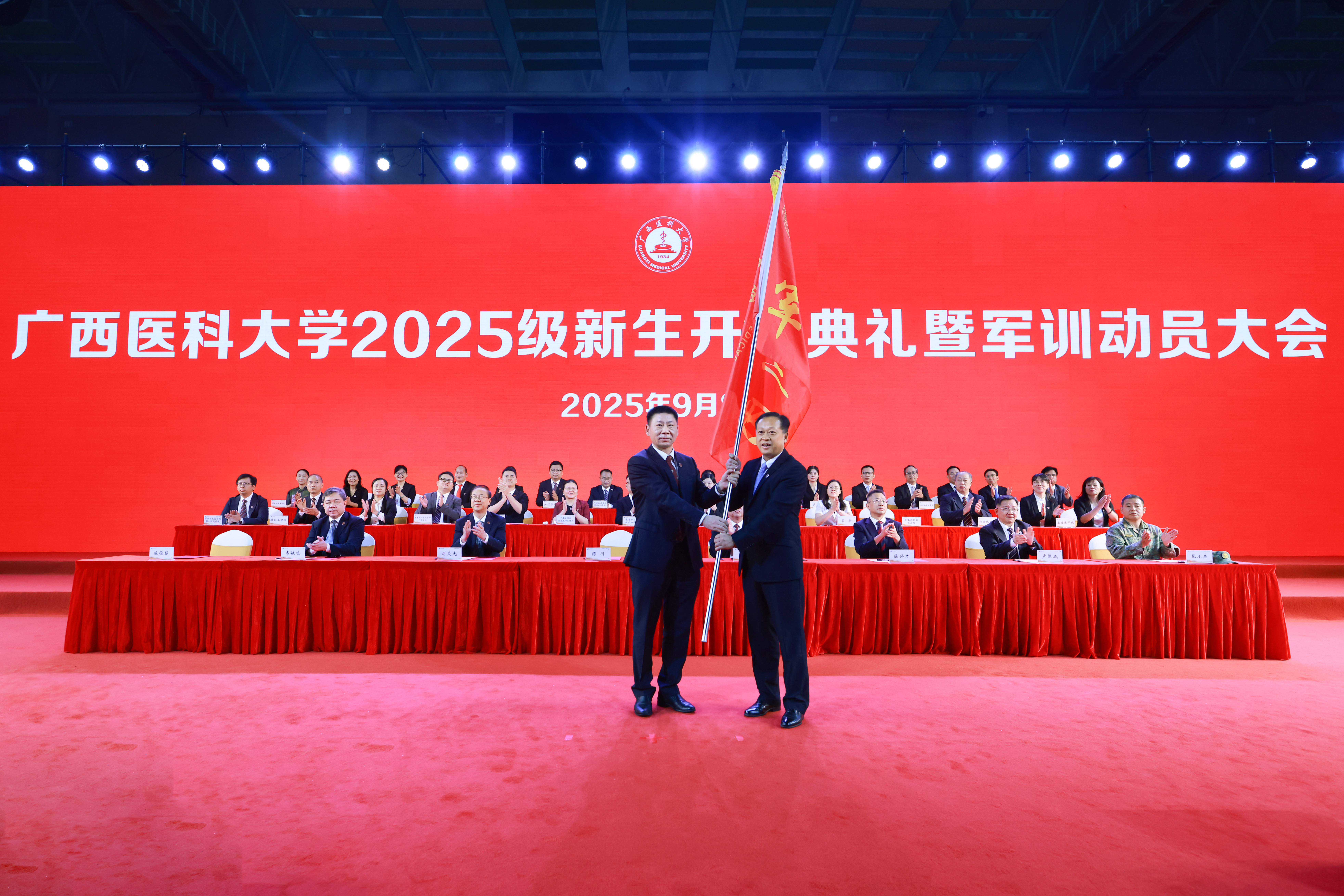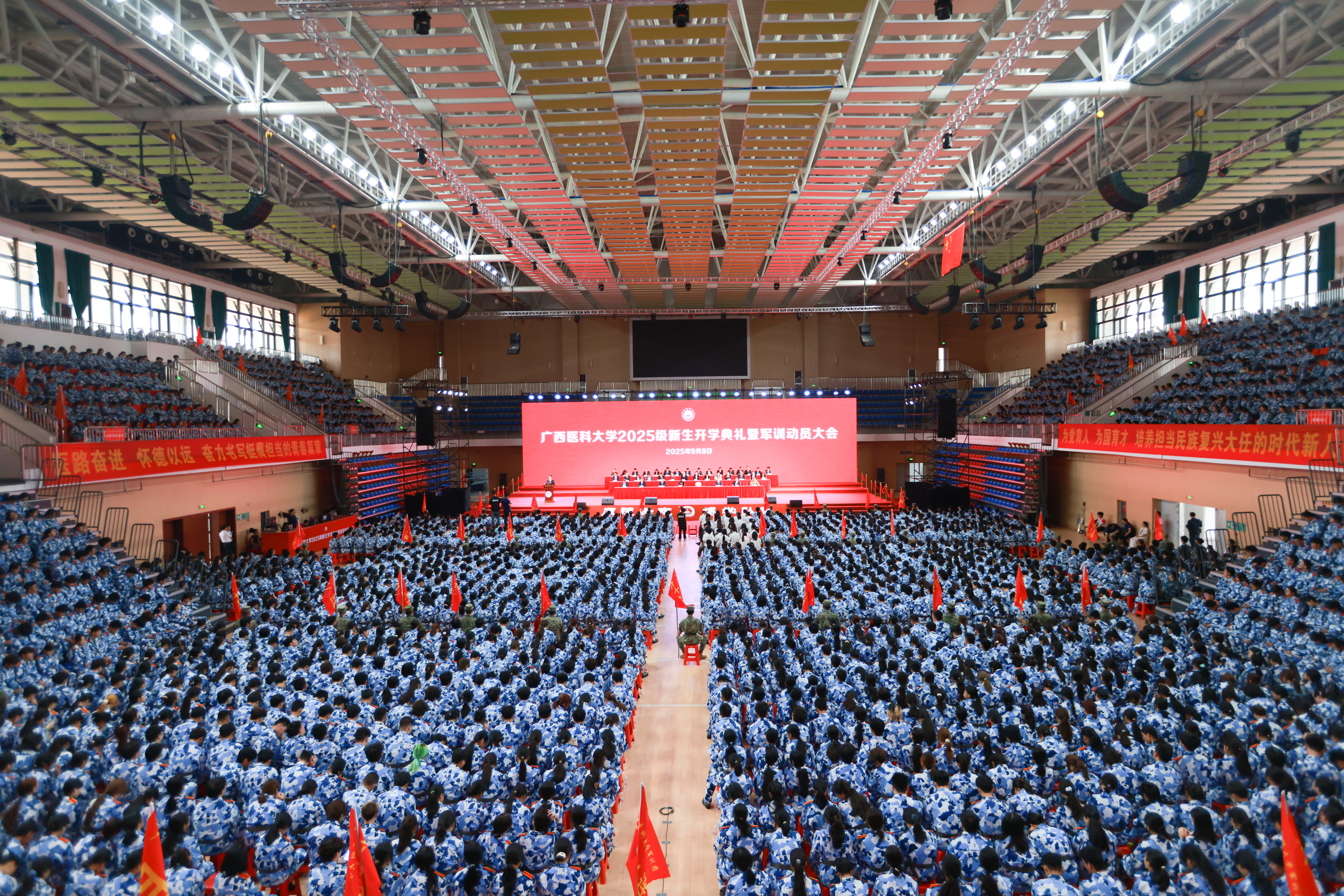 “我志愿献身医学,热爱祖国,忠于人民,恪守医德,尊师守纪,刻苦钻研……”全体新生紧握右拳,庄严宣读医学生誓词,表达对未来医学征途的无限憧憬与坚定信念。在激昂的校歌旋律中,广西医科大学2025级新生开学典礼圆满落幕。