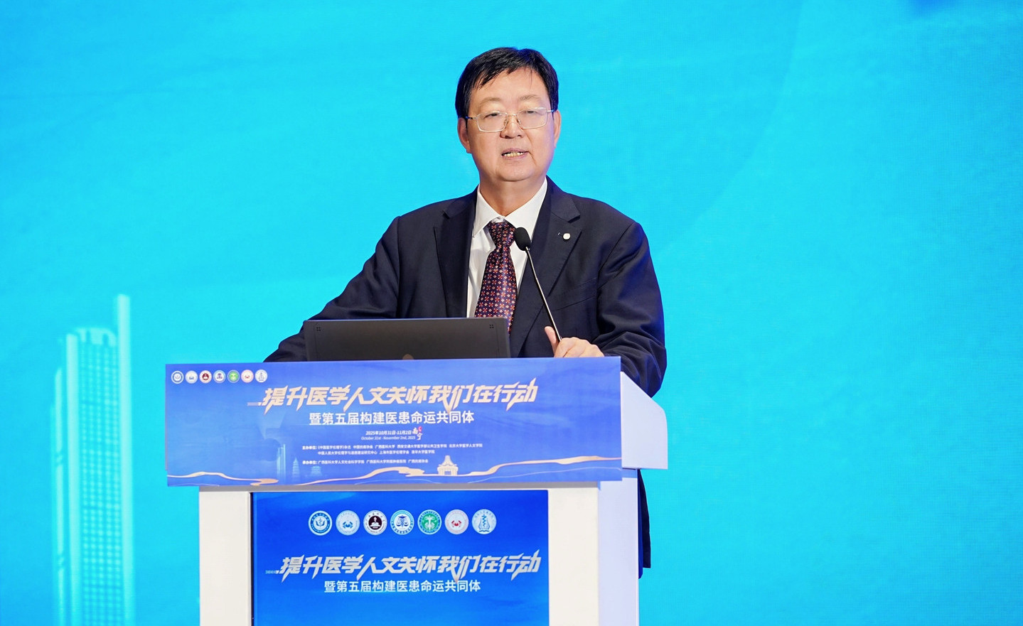 为促进医患关系的和谐发展,更好地将“医患命运共同体”理念从理论层面转化为实际行动与制度创新,11月1日上午,由《中国医学伦理学》杂志、中国抗癌协会、广西医科大学等8家单位联合主办,人文社会科学学院、附属肿瘤医院、广西抗癌协会等单位承办,130多家单位协办的“提升医学人文关怀我们在行动”暨第五届构建医患命运共同体学术大会在南宁开幕。我校党委书记陈川,浙江大学医学院控烟研究中心主任、俄罗斯基础与社会科学院外籍院士杨廷忠、《中国医学伦理学》杂志主编王明旭、上海市医学伦理学会会长杨放以及各界医学人文专家学者等500余人参加开幕式。开幕式由我校党委副书记刘灵光主持。
