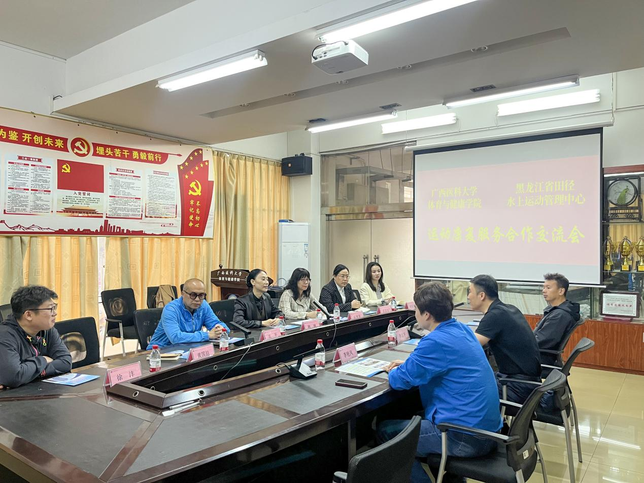 近日,广西田径运动发展中心、黑龙江省田径水上运动管理中心到体育与健康学院开展运动康复服务合作交流,并初步达成合作意向。学院党委书记、院长穆飒主持座谈会。