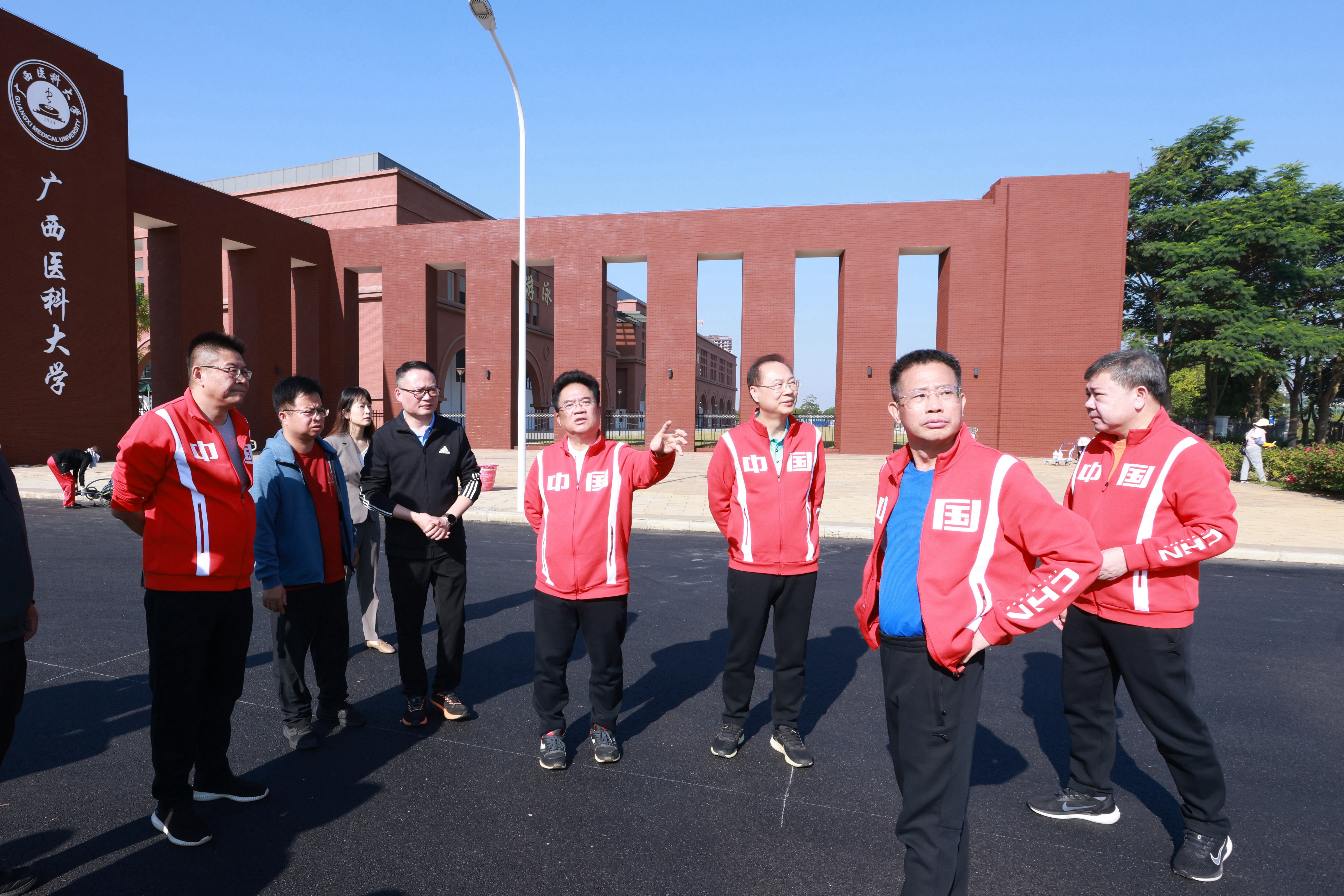 为进一步推进校庆筹备冲刺阶段各项工作,确保校庆各项活动顺利开展,11月8日上午,学校校长曾志羽、副书记刘灵光、副校长陈兴才、唐卫中,自治区纪委监委驻校纪检监察组组长韦敏观以及各相关职能部门负责人一行检查武鸣校区校庆筹备工作情况。