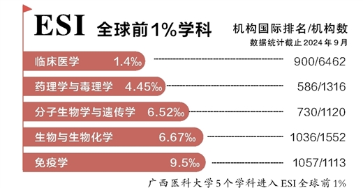 广西医科大学5个学科进入ESI全球前1%