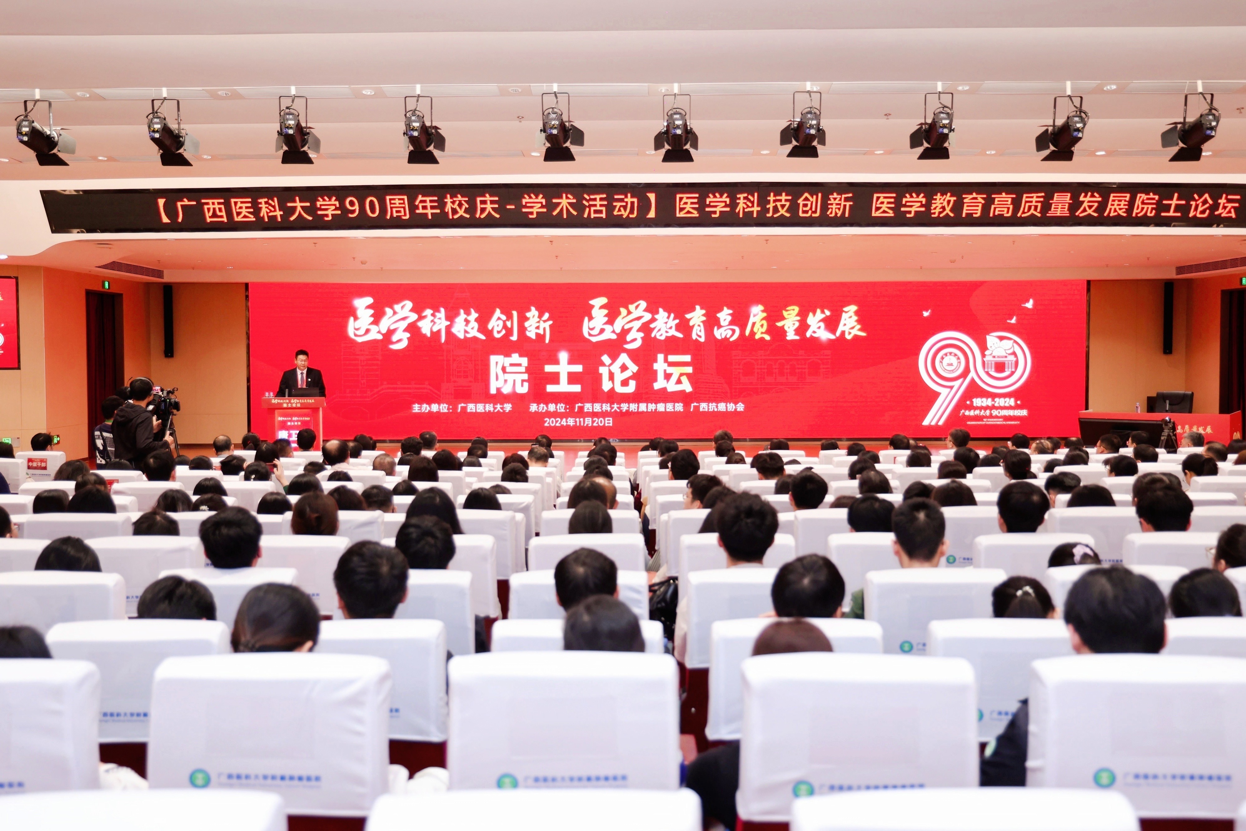 11月21日,我校迎来了建校90周年华诞。在建校90周年校庆之际,为营造校庆浓郁学术氛围、厚植创新文化沃土、弘扬科学家精神,学校启动了“90周年校庆—名家讲坛”系列讲座,截至今年11月,共邀请美国、德国、新加坡等113位国内外院士、知名专家走进“名家讲坛”,他们的深刻见解和前瞻性思维为学校科研人员提供了宝贵的启示和灵感。为进一步传承学术传统,展现新时代的医大风貌,学校科技处会同各二级学院于11月18日—24日校庆期间,以“医学科技创新 医学教育高质量发展”为主题,分别邀请樊代明、廖万清、丁健、程京、尚永丰、蒲慕明、詹启敏、林东昕、陈孝平、樊嘉、陈子江、王俊、张学、董晨、赵铱民、王以政、林圣彩、顾宁、李劲松、马骏、黄晓军等21位院士以及28位杰青、长江等高层次人才开展院士论坛、院士手术演示和系列高水平学术活动15场,为学校90周年华诞献上学术盛宴,中新社、光明日报、中国青年报、广西日报、广西广播电视台等中央及自治区主流媒体关注并报道。