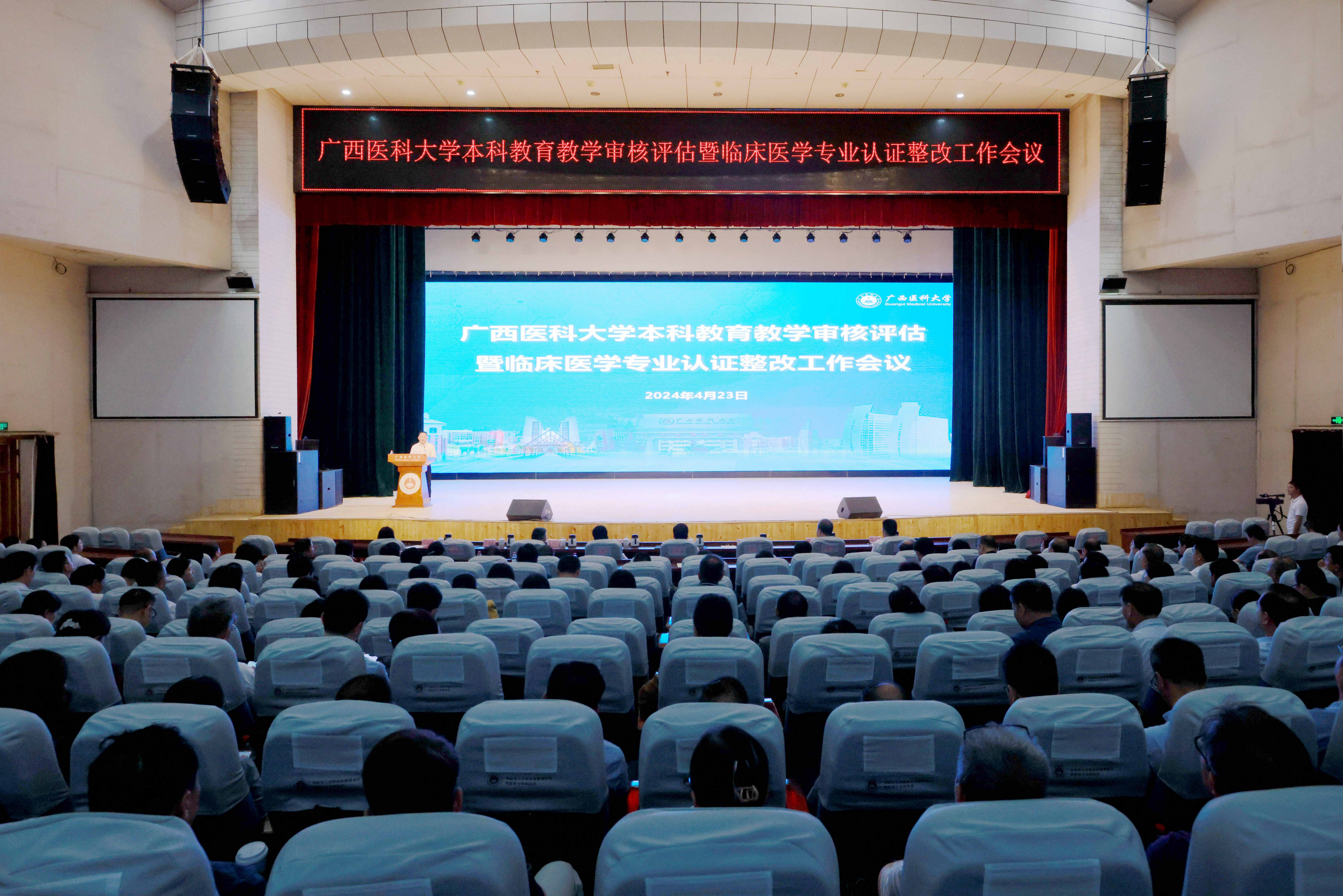 为动员全校上下进一步统一思想,深化认识,全力抓好本科教育教学审核评估和临床医学专业认证问题的整改,以更加扎实的工作巩固评建成果,以更加积极的作为推动本科教育教学高质量发展,4月23日下午,我校在南宁—校本部图书馆演讲厅召开本科教育教学审核评估暨临床医学专业认证整改工作会。学校党委黄照权书记、曾志羽校长出席会议并讲话。卢德成副校长主持会议。