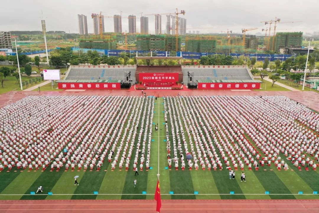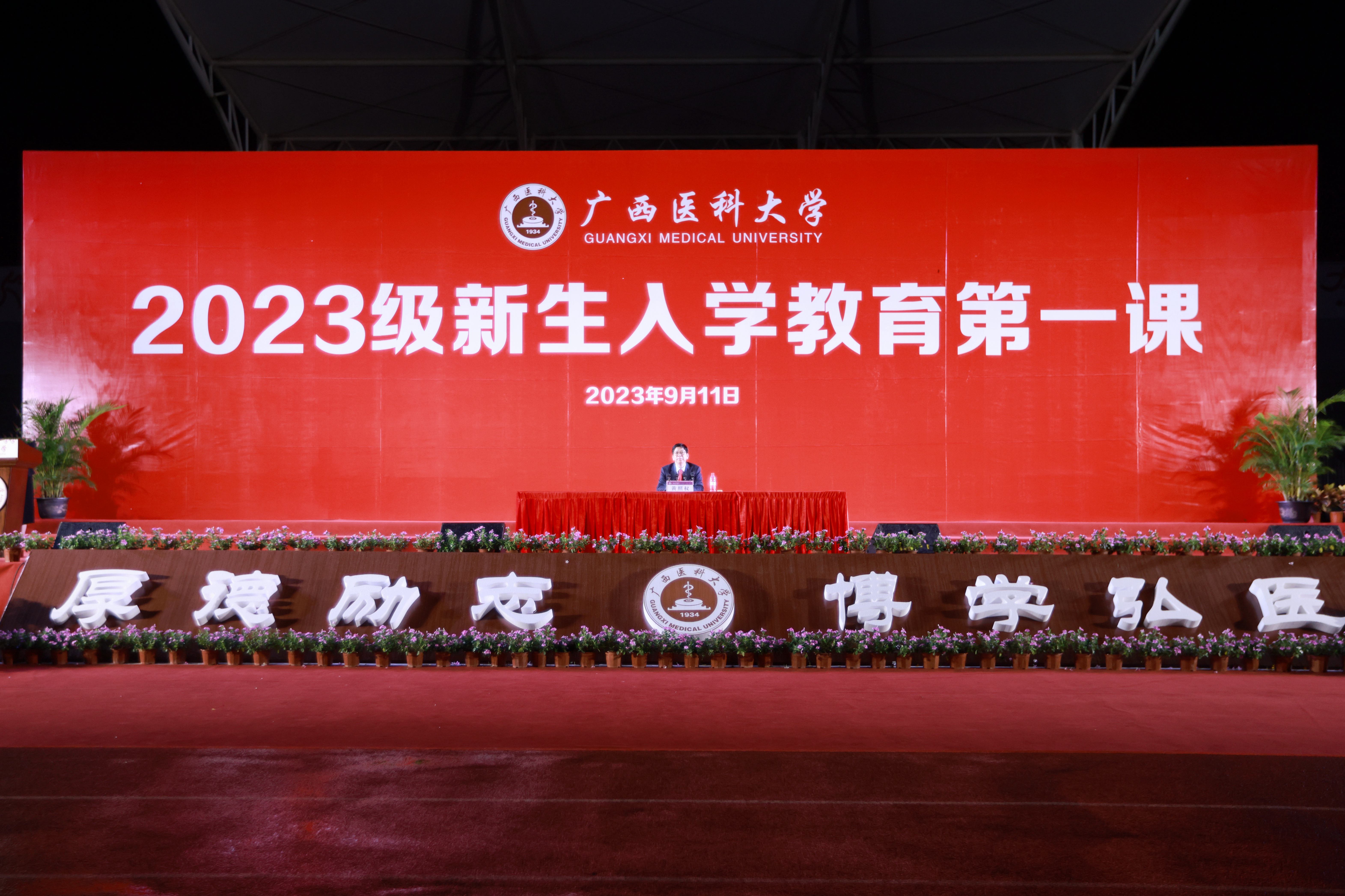 黄照权书记用详实的数据、鲜活的榜样和生动的事例,围绕自己对大学的理解、广西医科大学是一所什么样的大学、好学生应该是什么样子的等内容,以自己从教从医的亲身感悟,勉励2023级新生尽快完成角色转化,规划好大学学习与生活,在医大练就过硬本领,努力在医大书写属于自己的精彩人生。