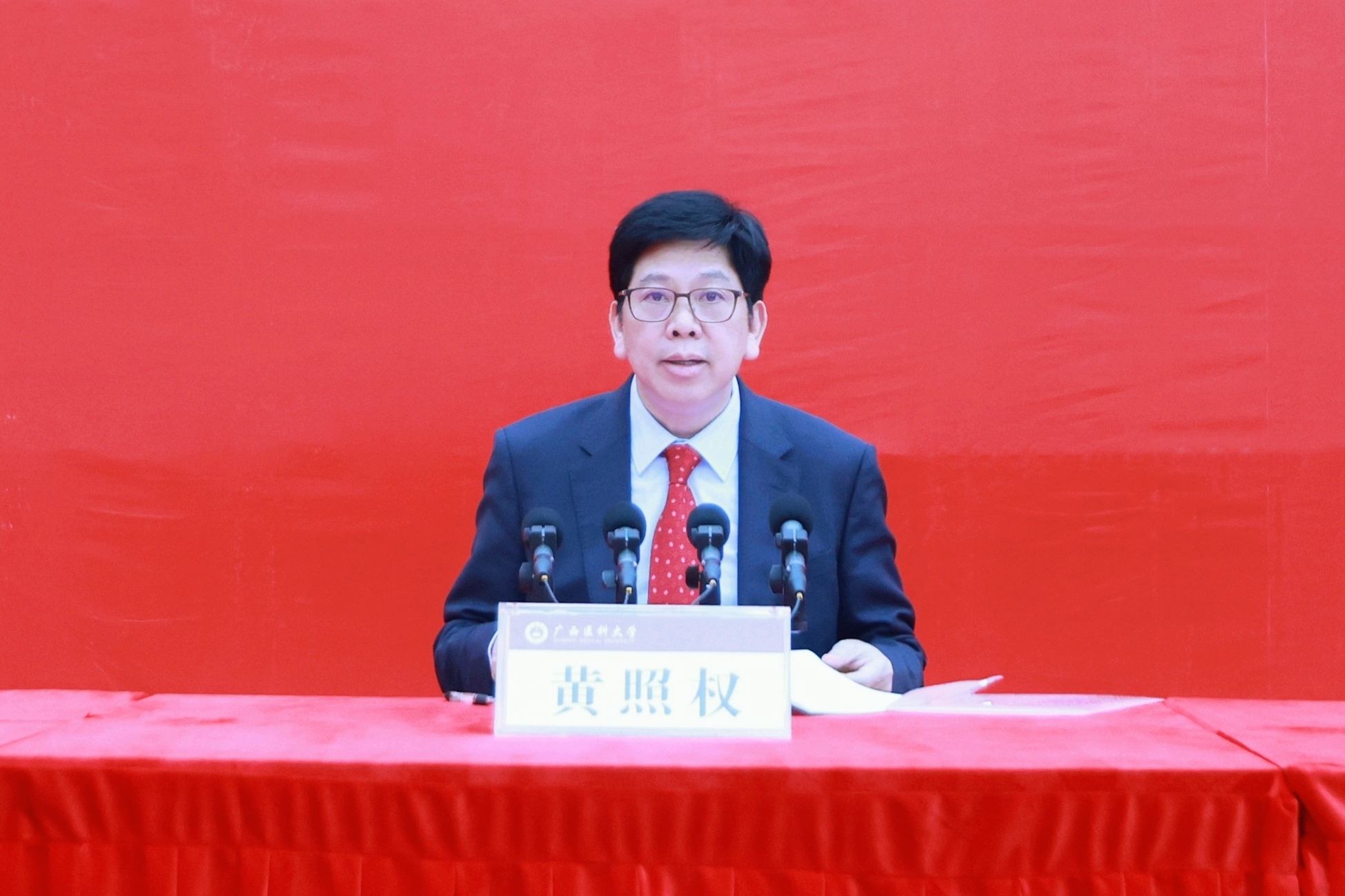 金风送爽启新程,丹桂飘香赴未来。9月11日晚,在秋日甘霖的陪伴中,学校党委书记黄照权以《勇担时代使命 谱写青春华章》为题在南宁-武鸣校区开讲2023级新生入学教育第一课,与校本部和玉林校区新生线上“云端”相会。