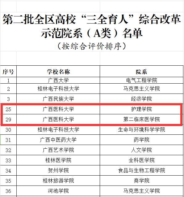 近日,《自治区教育厅关于公布第二批全区高校“三全育人”综合改革示范院系名单的通知》,我校护理学院、第二临床医学院、基础医学院、人文社会科学学院等4个学院入选第二批全区高校“三全育人”综合改革示范院系。