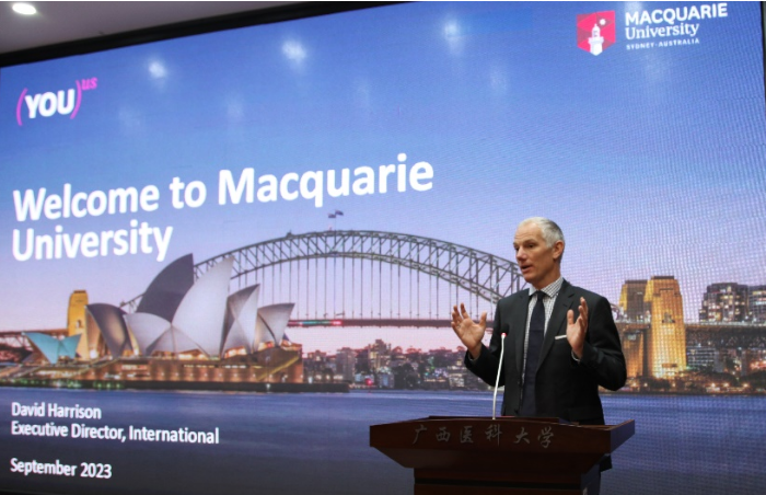 9月19日上午,我校首届中澳学分互认联合培养项目2023级新生开学典礼在校本部国际教育学院学术报告厅举行。澳大利亚合作高校、中高计划全国运营中心等合作方代表、我校国际交流处、药学院等相关职能部门、二级学院领导出席了开学典礼。药学院教师代表、班主任,2023级中澳班全体新生参加了开学典礼和项目答疑会,新生家长们通过网络直播线上参会。开学典礼由国交处副处长曹治柳主持。
