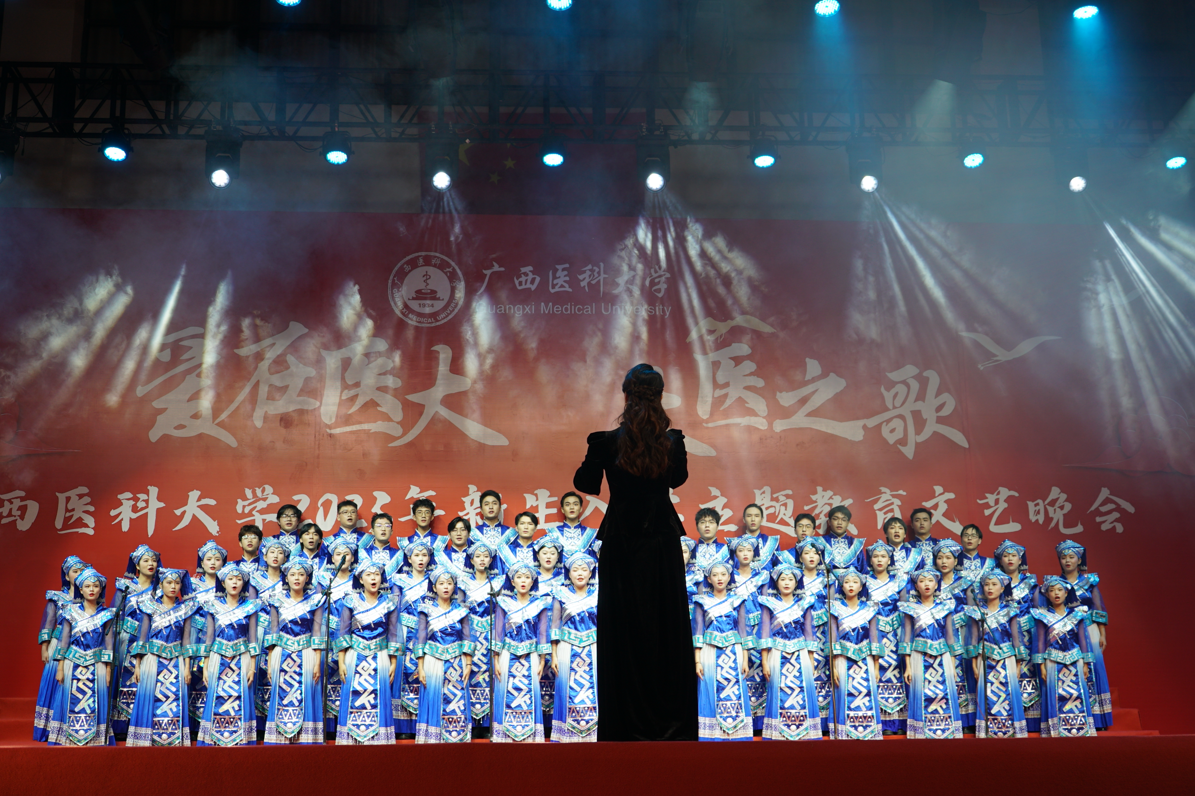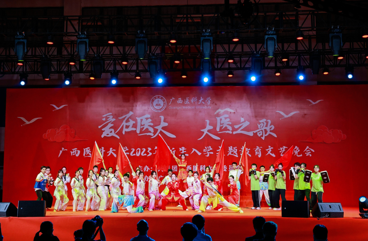 为进一步凝聚师生力量,传承医大精神,10月14日晚,我校“爱在医大·大医之歌”2023年新生入学主题教育文艺晚会在武鸣校区风雨球馆精彩上演。晚会以现场观看和线上直播两种方式同步进行,现场观看师生达1000余人,线上直播点击率达450余万人次。