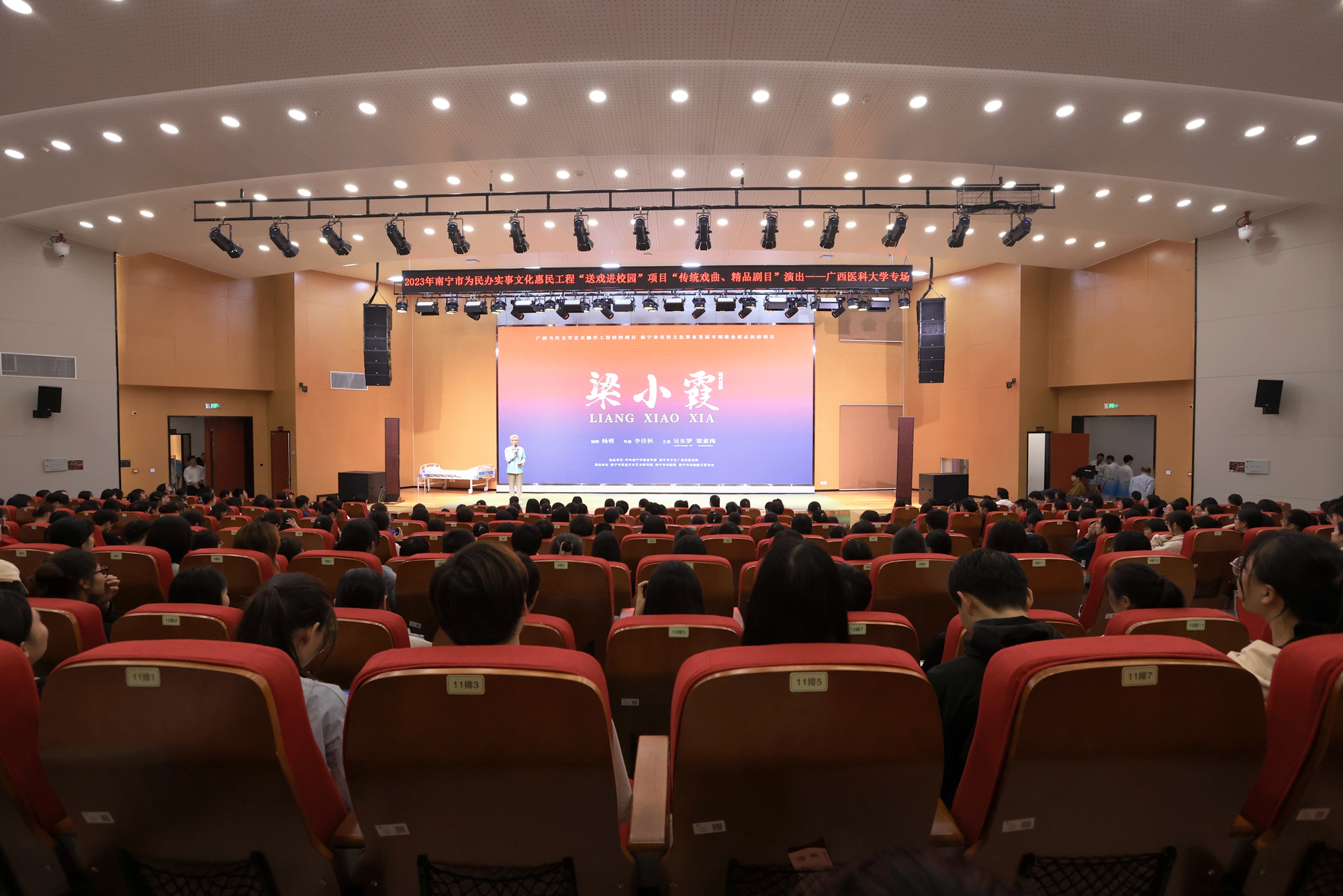 为致敬抗疫英雄,弘扬伟大抗疫精神,进一步以优秀的传统艺术形式丰富校园文化,提高师生艺术修养,以优秀校友的先进事迹勉励学子苦练技能本领,坚定理想信念,11月9日晚,由中共南宁市委宣传部、南宁市文化广电和旅游局出品,南宁市民族文化艺术研究院演出的现代邕剧《梁小霞》在我校武鸣校区图书馆报告厅精彩上演。我校师生代表400余人观看了演出。