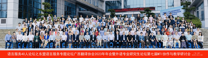 11月10-12日,由广西翻译协会主办、广西医科大学外国语学院承办的语言服务40人论坛之东盟语言服务专题论坛、广西翻译协会2023年年会暨外语专业研究生论坛、第七届MTI协作与教学研讨会成功在我校举办。来自广西区内外专家学者、翻译工作者及智能翻译技术研发团队代表近300人参加研讨会。
