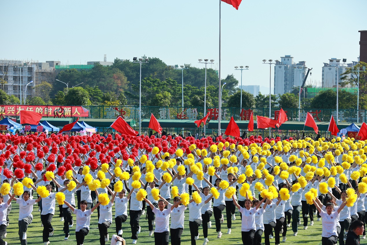 在激昂的运动员进行曲与同学们此起彼伏的欢呼声中,红旗护卫队迈着矫健的步伐;各学院方块队身着各具风采的服装,用精彩纷呈且紧扣时代脉搏的文艺驻停表演接受检阅,充分表达对学校建校89周年的祝贺之情;1800多名学生表演的大型团体啦啦操,动作整齐划一、精神抖擞,折射出我校体育教育教学的深厚实力,充分展现了医大人奋斗拼搏的青春风采。