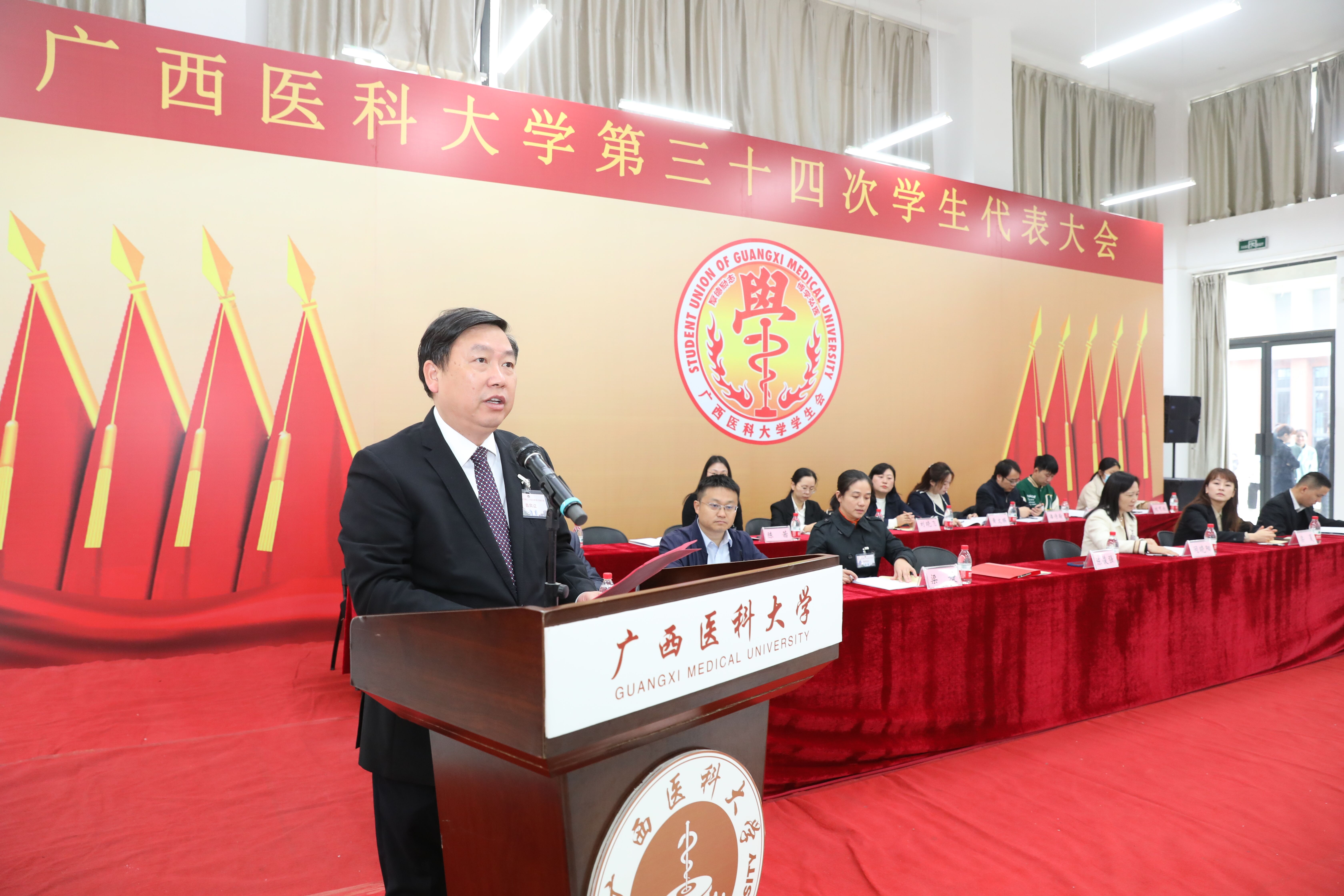 12月2日,广西医科大学第三十四次学生代表大会在南宁—武鸣校区A2-6室举行。学校党委常委、副校长陈俊强,学生工作部(处)、校团委,党委、校长办公室、组织部,宣传部、教师工作部相关负责人,校团委、二级学院团委老师、259名学生代表参加开幕会。