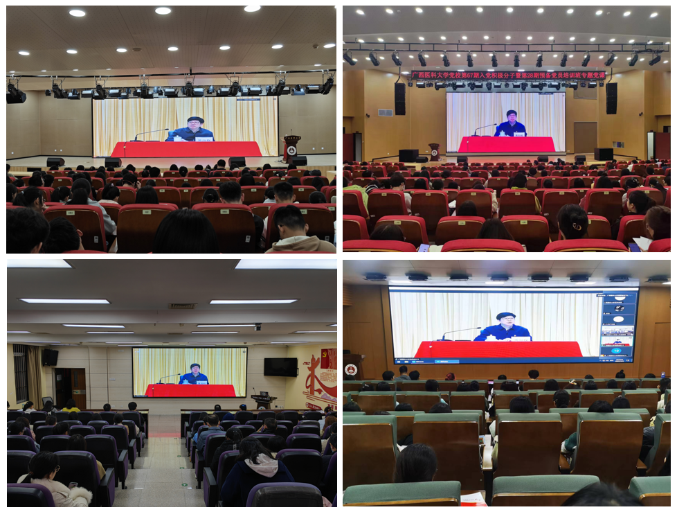 为深入学习贯彻习近平新时代中国特色社会主义思想,12月4日晚,我校党校第67期入党积极分子暨第28期预备党员培训班专题党课在校本部图书馆演讲厅举行。校党委书记黄照权通过线下讲授和线上直播的形式为1190名入党积极分子、568名预备党员师生上了一堂题为《深入学习贯彻习近平新时代中国特色社会主义思想,开辟马克思主义中国化时代化新境界》的专题党课。开班仪式由校党委组织部部长覃远汉主持。