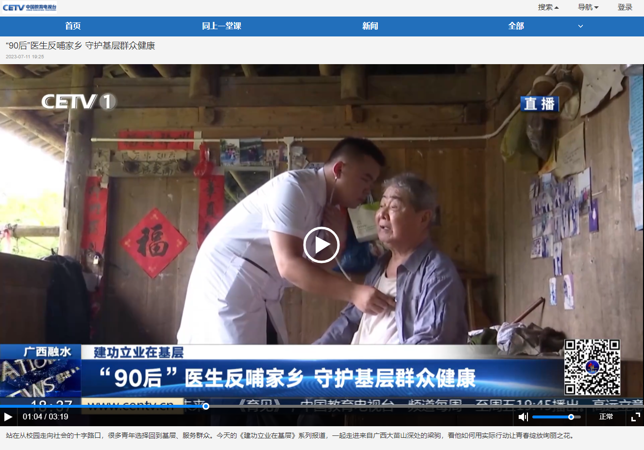 近日,中国教育电视台报道我校全科优秀毕业校友梁驹反哺家乡,守护基层群众健康的事迹。